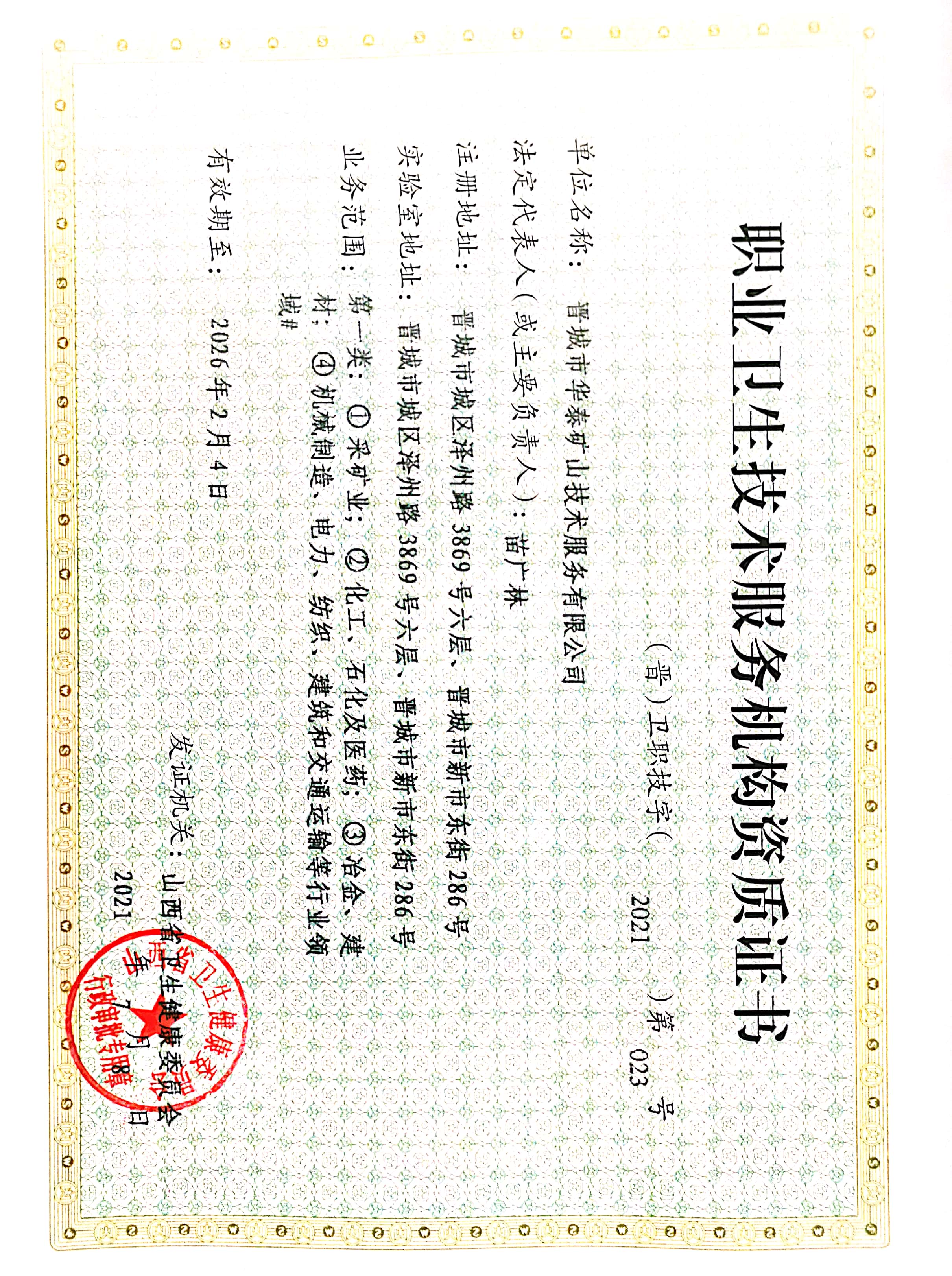 晉城國投華泰科技有限公司(以下簡稱華泰公司)是一家經營性國有企業,注冊資金1000.2萬元(由晉城市華泰礦山技術服務有限公司和晉城澤泰安全技術服務有限公司合并整合組建,國投全資)。公司持有山西省衛生健康委員會頒發的《職業衛生技術服務資質證書》、山西省應急管理局頒發的《安全評價機構資質證書》和山西省市場監督管理局頒發的《檢驗檢測機構資質認定證書》等資質,設施設備、能力、資質配套齊全。...【詳細信息】